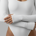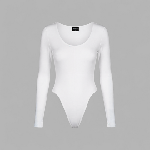 此款"BLVCK 圓領連體上衣 - 白"為女裝系列,在後脖頸處飾有BLVCK品牌經典字樣Logo設計,版型運用大圓領連體衣設計完美貼合曲線,檔底有壓釦設計,方便穿著使用,側腰簍空設計讓腰部線條明顯並有修飾比例的效果,拇指洞手袖設計讓細節風格效果更加豐富,整體細節感滿滿,並提供黑/白兩色可供選擇。