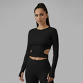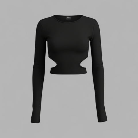此款"BLVCK 短版露腰上衣 - 黑"為女裝系列,在後脖頸處飾有BLVCK品牌經典字樣Logo設計,版型運用短板設計,中後腰簍空設計讓腰部線條明顯並有修飾比例的效果,拇指洞手袖設計讓細節風格效果更加豐富,整體細節感滿滿,並提供黑/白兩色可供選擇。