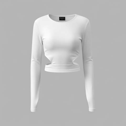此款"BLVCK 短版露腰上衣 - 白"為女裝系列,在後脖頸處飾有BLVCK品牌經典字樣Logo設計,版型運用短板設計,中後腰簍空設計讓腰部線條明顯並有修飾比例的效果,拇指洞手袖設計讓細節風格效果更加豐富,整體細節感滿滿,並提供黑/白兩色可供選擇。