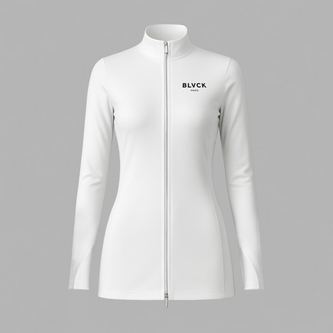 此款"BLVCK 高領多穿法洋裝外套 - 白"為女裝系列,在左胸前飾有BLVCK品牌經典字樣Logo設計,版型運用中高領外套式設計,多樣式穿法可作為外套亦可作為洋裝,拇指洞手袖設計讓細節風格效果更加豐富,雙頭拉鏈的設計可供變換不同的造型,空氣棉材質讓穿著起來挺闊舒適度更佳,整體細節感滿滿,並提供黑/白兩色可供選擇。