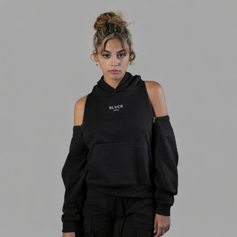 此款"BLVCK 黑魂拉鍊連帽衫"在胸口保留品牌極簡風格和精緻刺繡的LOGO,剪裁設計利用肩膀和背部簍空作為亮點,跳脫連帽衫的框架,除了穿著舒適休閒外且讓整體時尚設計感大大提升,毫無疑問的必定是秋冬最靚單品!